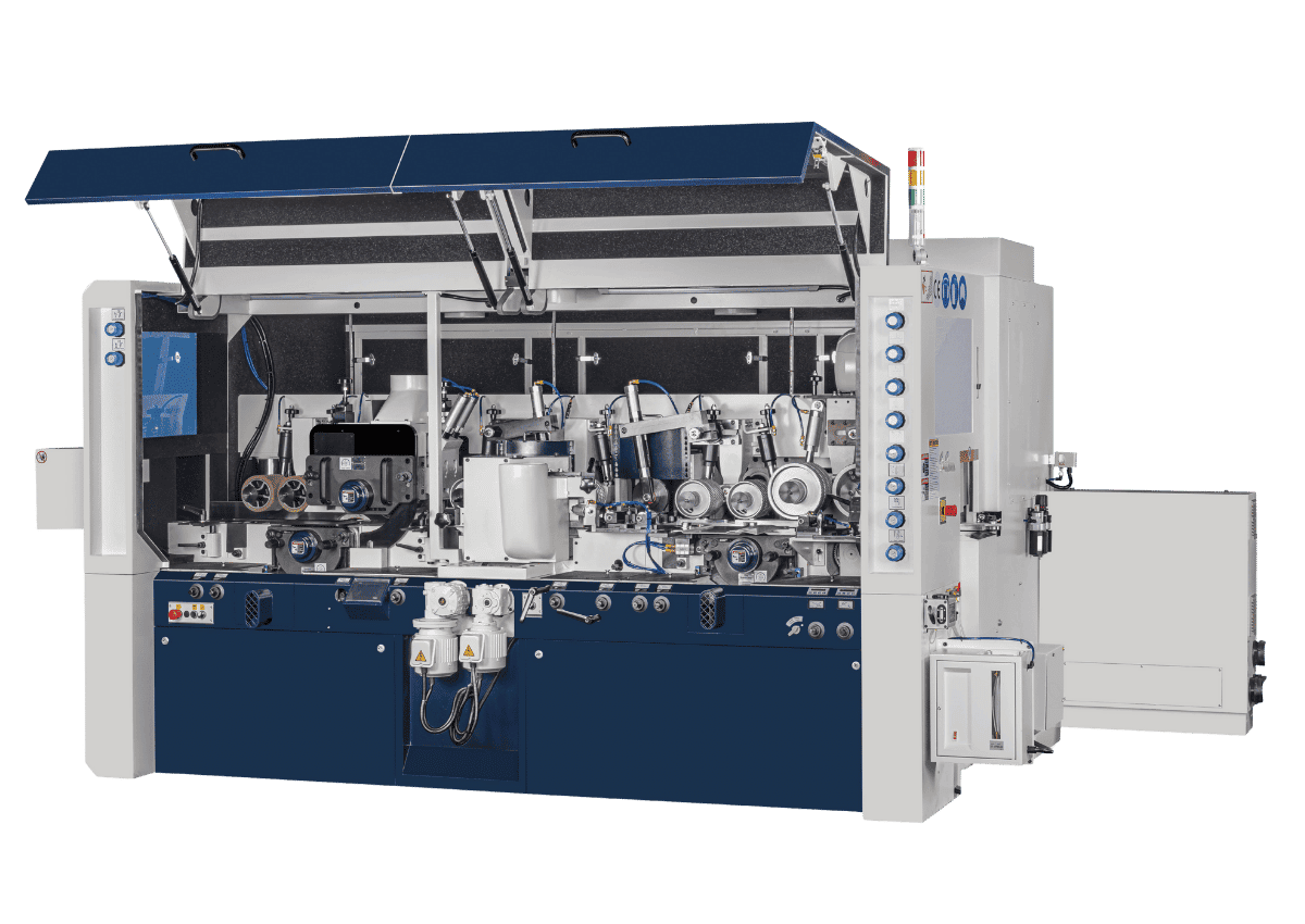 - Exclusive, separate adjustment of the vertical spindles and the feeding table allows the feeding table to be positioned extremely close to the cutterhead to provide added cutting stability.